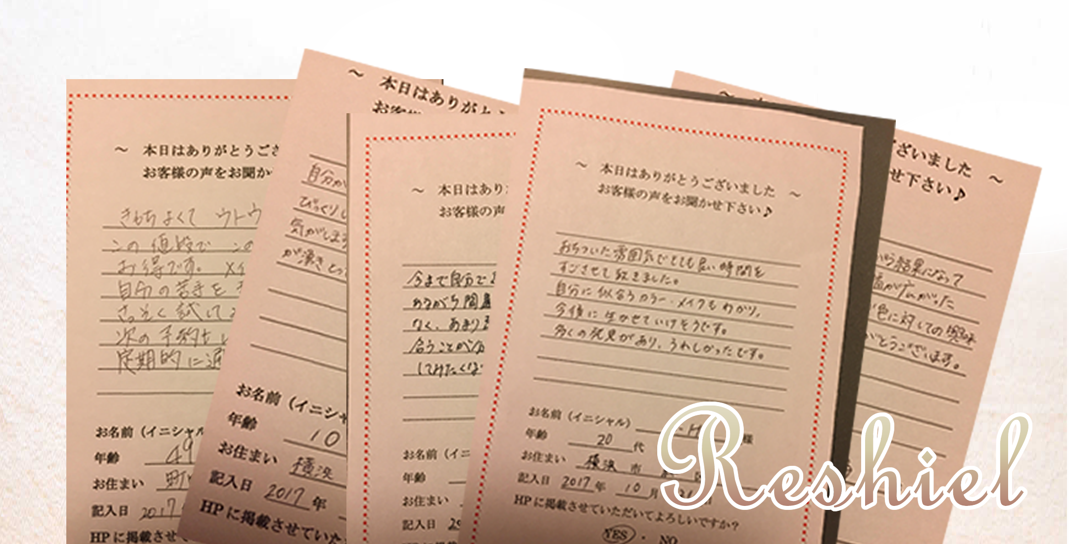 久しぶりにエステを受けにReshielを訪問しました。 いつも肌の悩みに丁寧に応対していただいてます。 きめ細やかな指の動きに、エステの間はいつの間にか眠ってしまう気持ちの良さです! 終わった後は肌が引き締まり、心なしか顔が小さくなったような気がします。 また娘の入学式の前に来訪したいです!。【ウルド さん(50代前半/主婦)】